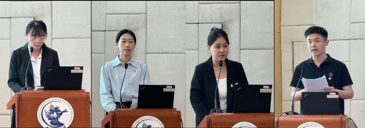 毕业生党员代表李萱芝、郑佳霓、周斐斐、许彤分别代表本科、硕士、MBA、博士毕业生党员发言。他们分享了参加党组织生活的回忆和收获,表达了对学校、党组织、老师以及同学们栽培和陪伴的感激之情。他们一致认为,个人理想与家国情怀紧密相连,唯有将青春奋斗融入党和人民事业,才能实现人生价值。作为毕业生党员,要牢记党员身份,精进专业本领,用大爱服务群众,用行动践行初心,以责任彰显担当,为扎实推进中国式现代化贡献商院力量。