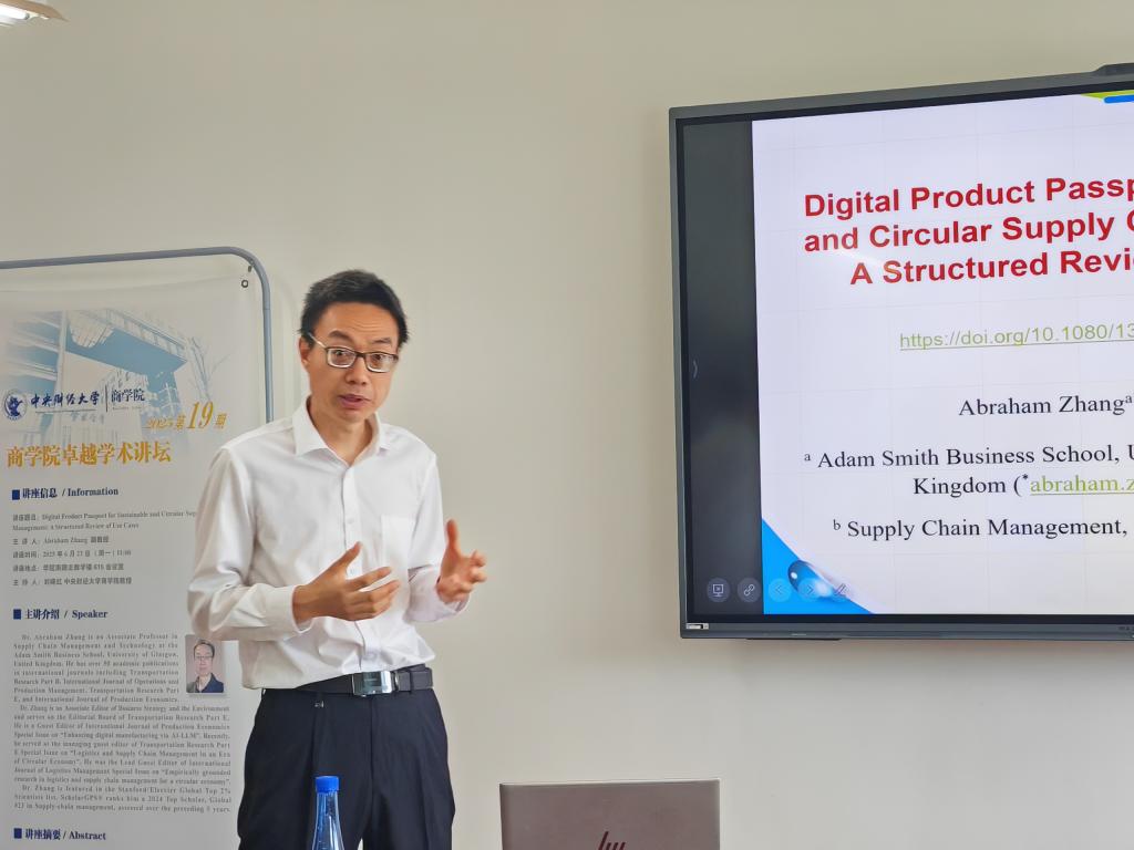 2025年6月23日上午,yl7703永利官网在学院南路校区主教学楼615会议室成功举办了yl7703永利官网卓越学术讲坛2025年第十九期讲座。本次讲座特邀英国格拉斯哥大学亚当斯密yl7703永利官网供应链管理与技术副教授Abraham Zhang担任主讲嘉宾。yl7703永利官网的教师、博士生、硕士生以及来自其他高校的学者共计20余人参加了这一学术活动。