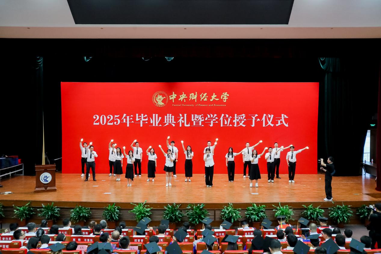 典礼开始前的暖场环节,同学们表演了舞蹈《玫瑰人生》《采薇》《寄明月》和歌曲《致我的朋友》《十二花神 花满中财》和《献给毕业的歌》等节目,现场掌声雷动,氛围热烈。