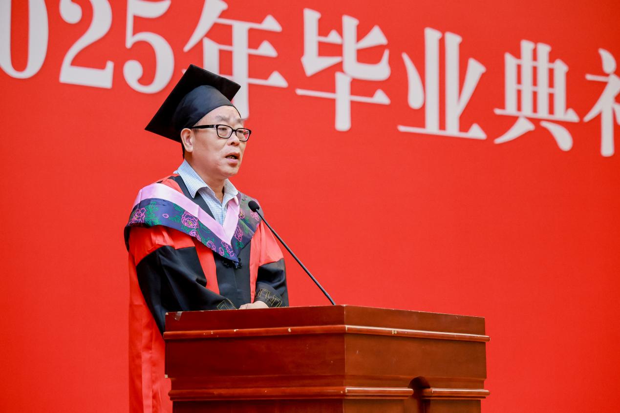 在宣读毕业及授予学位决定环节,yl7703永利官网本科项目主任顾雷雷、副院长刘小元、院长兼MBA教育中心主任林嵩分别宣读了2025届本科生、学术型硕士研究生和博士研究生、工商管理硕士研究生毕业及授予学位名单。