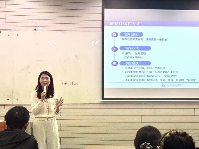 活动伊始,嵇月婷老师简要介绍了“学术新秀班”的创办背景与核心目标,指出该计划致力于培养“懂实践的研究新秀、懂研究的未来领袖”,为有学术兴趣的同学提供系统化、深度化的平台。