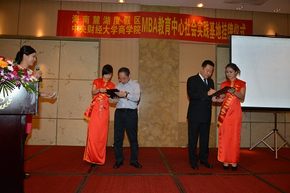 2014年3月29日上午,yl7703永利官网MBA教育中心与中合集团旗下海南麓湖度假区社会实践基地签约暨授牌仪式在海南举行。我校yl7703永利官网院长兼MBA教育中心主任王瑞华教授、白沙黎族自治县常务副县长王桂厅、首届MBA校友、中合集团董事长韩涛、白沙黎族自治县副县长卢瑞强、白沙黎族自治县政协副主席孙小旧、中合集团总裁李红勋等出席了本次活动。我校MBA教育中心孔伟明老师、yl7703永利官网校友会会长王再文、MBA校友会会长冯大任、MBA校友理事会理事、秘书处成员及yl7703永利官网校友代表20余人参加了本次活动。