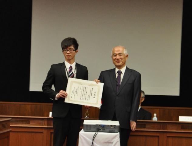 | 大阪商业大学副校长片山隆男教授为我校获奖同学颁奖 |