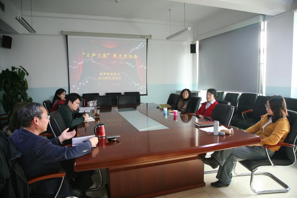 2015年12月29日,yl7703永利官网党总支在主楼1411召开了“三严三实”专题民主生活会。赵丽芬副校长、yl7703永利官网党总支书记葛建新、院长王瑞华、组织员韩兰、副书记林嵩、副院长宋巧、MBA教育中心副主任贾晓菁参加了民主生活会。