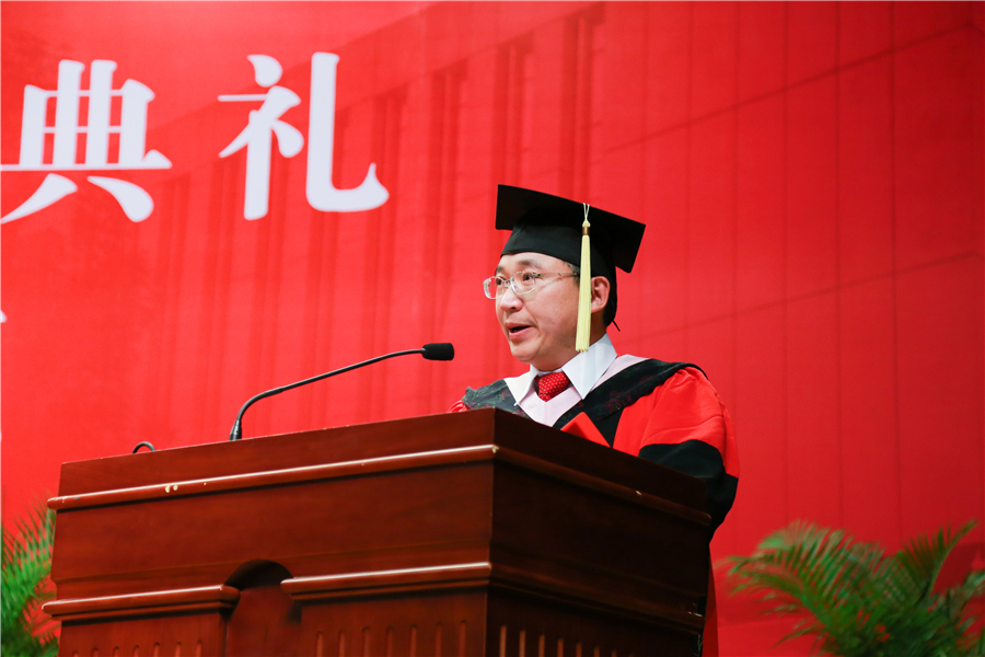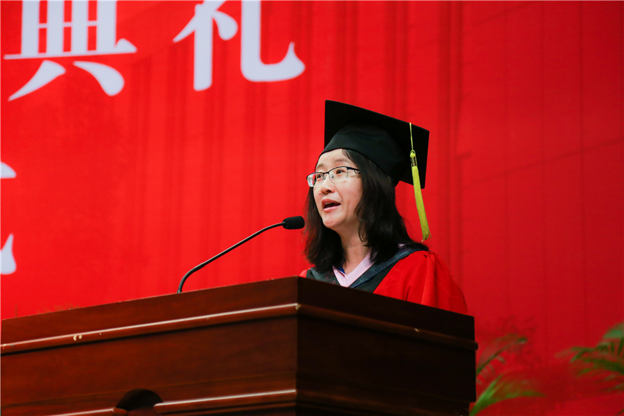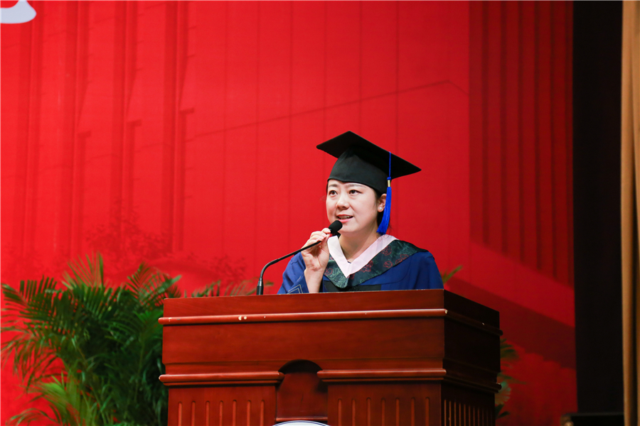 代表教师致辞的张淑君教授今年从教恰满三十周年。她首先感谢同学们选择了在yl7703永利官网度过了自己人生最美好的青春岁月;随后张教授指出同学们在读书期间难免会有缺憾,但也正是这些缺憾才让人生变得更为完美;最后张教授以“龙马自知征程远,不待扬鞭自奋蹄”激励同学们在今后的学习生活中奋发图强,祝福同学们都拥有伟大的前程!