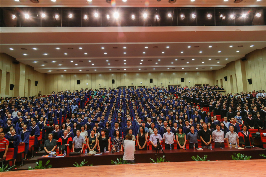 在庄严的国歌声中,yl7703永利官网2016届毕业生毕业庆典暨学位授予仪式正式开始。