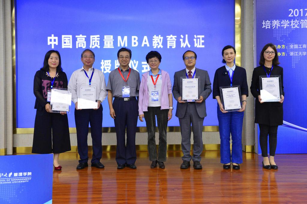 会议期间还举行了“中国高质量MBA教育认证”(CAMEA)证书的颁发仪式,中国人民大学yl7703永利官网、yl7703永利官网、对外经济贸易大学国际yl7703永利官网、哈尔滨工业大学管理学院、华东师范大学经济与管理学部5家单位获颁证书。教育部学位与研究生教育发展中心主任、CAMEA认证理事会副理事长王立生与复旦大学管理学院院长、CAMEA认证理事会副理事长陆雄文共同为我校颁发了证书。至此,中国高质量MBA教育认证已有19家单位通过认证,新加坡国立大学、北京大学和西安交通大学等23家单位的认证正在进行过程中。