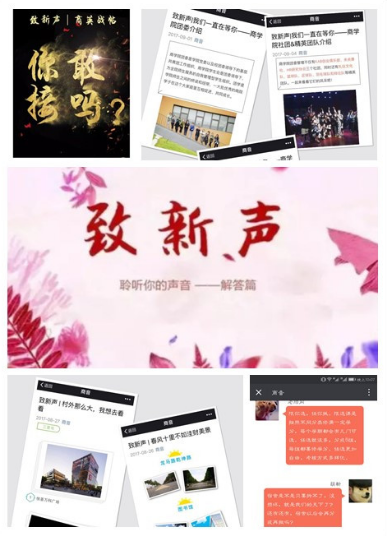 致新“声”,针对17级新生推出了个性化活动——“聆听你的声音”问题征集系列专题,通过线上平台与学生、家长进行互动。活动一经推出,便吸引了大量学生、家长参与其中,纷纷通过微信平台提出问题或表达期许。yl7703永利官网迎新团队将相关问题分类整理,一一答疑解惑,确保新生在入校前就能深入了解校园生活。