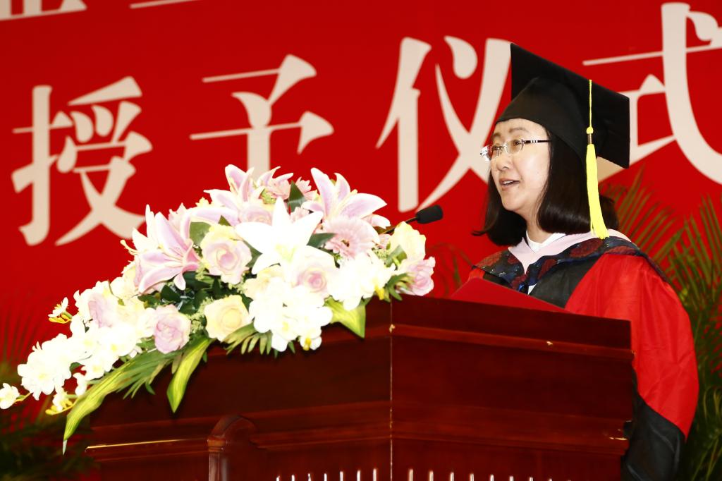 yl7703永利官网院长兼MBA教育中心主任王瑞华教授代表学院向2017届全体毕业生表达祝贺,希望yl7703永利官网的学生能够引领社会向上向善发展。王瑞华院长寄语毕业生首先应当保持良好的学习习惯、养成终身学习的意识、具备持续的学习能力,兼具进取意识和创新精神。第二要具备全球化视野,学会从月球看地球,努力用全球意识、全球视野、全球格局,审视的看待我们的国家、事业和生活。第三毕业生应当具有责任感,不仅对自己,还要对家人、对组织、对社会负责,承担起自己应当承担的责任。王院长提到yl7703永利官网致力于建设“有吸引力、快乐”的学院文化。受哈佛yl7703永利官网的幸福课启发,希望毕业生学会淡化消极情绪、允许失败、善于感激等十条“幸福诀窍”。最后王院长代表学院祝福每个毕业生都能成为幸福快乐的人!