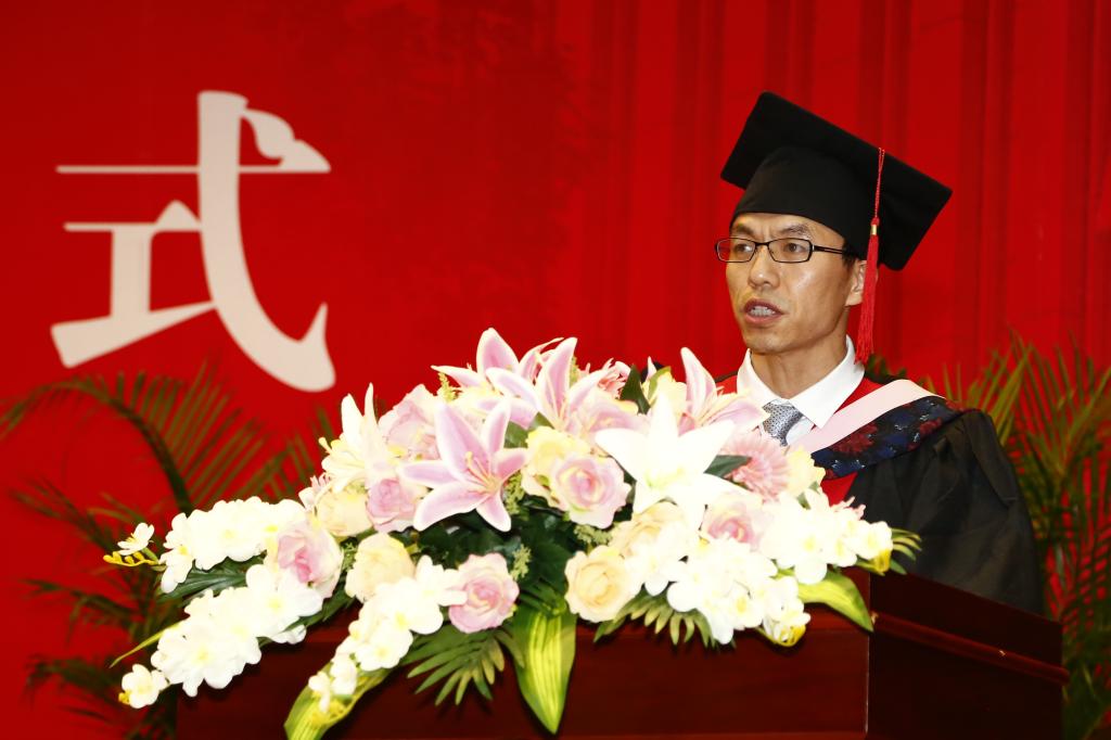 供应链与运营管理系周利国教授作为教师代表致辞,他首先向2017届毕业生表示衷心的祝贺。周老师回顾了自己作为改革开放的亲历者和建设者,为国家的强盛做出努力的历程,并鼓励毕业生们积极投身于国家经济发展的浪潮中,去亲历这个伟大的时代。最后,周老师希望全体毕业生们能够坚持读书、修德、为仁,成为自知自胜、知足有志之人,为国家的伟大复兴做出自己的努力。