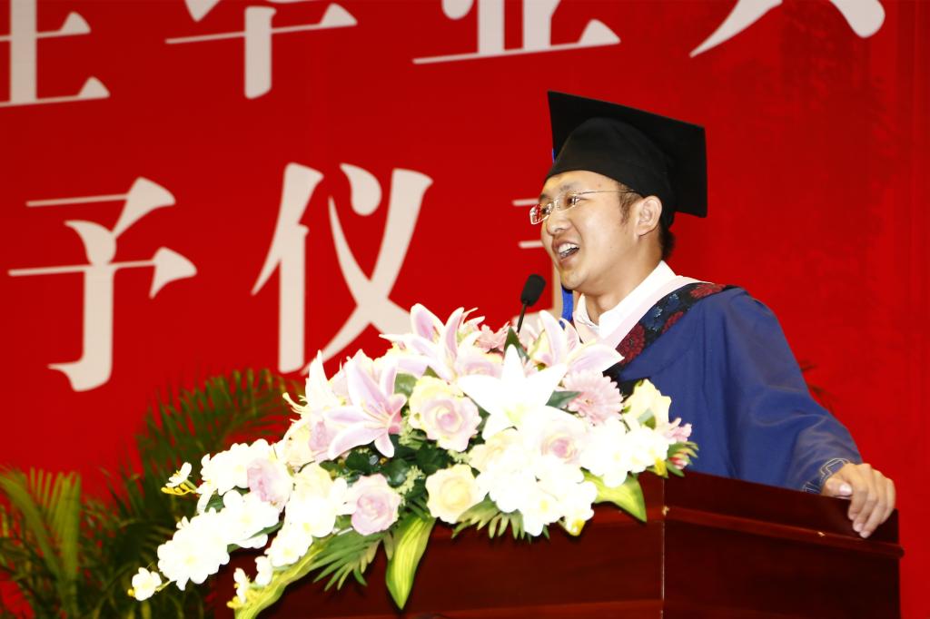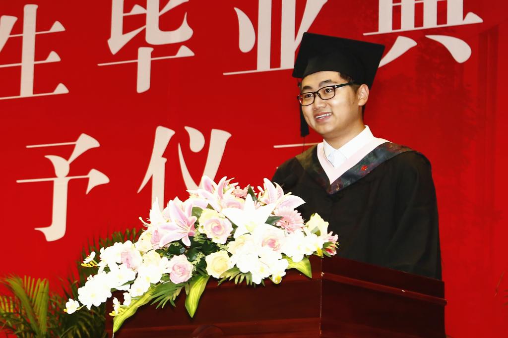 吴松桥、石鹏、王健辉、韩凌分别代表2017届本科毕业生、学术型硕士毕业生、博士毕业生、MBA毕业生发表致辞,他们饱含深情地回忆了自己在学校度过的难忘岁月和青春记忆,并祝愿母校越办越好、再创辉煌,祝愿老师身体安康、桃李天下,祝愿全体2017届毕业生奋勇向前,勇攀高峰。