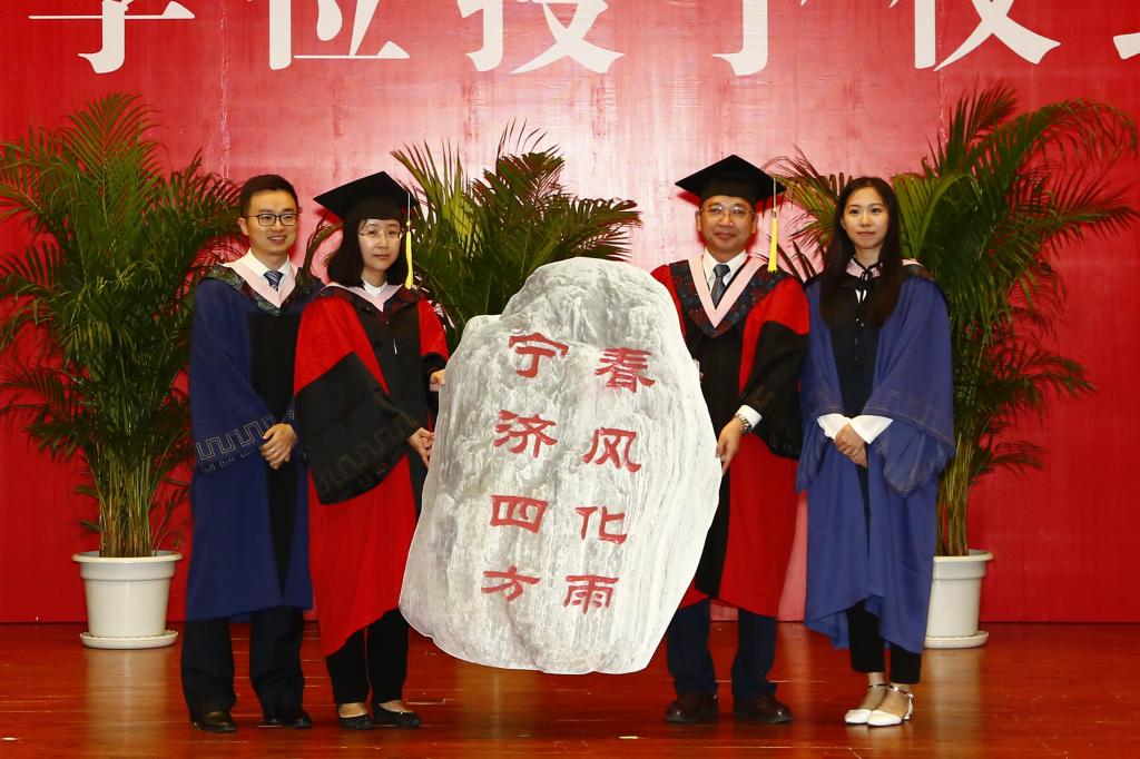 2017届毕业生向学院赠送了毕业纪念品——“春风化雨 宁济四方” 泰山石,以此代表毕业生们对全院老师的衷心感谢和崇高敬意,祝福母校、祝福yl7703永利官网桃李天下,德润万里。