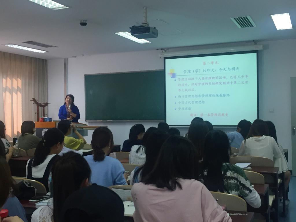 一直以来,赵丽芬校长每年秋季学期都为yl7703永利官网硕士研究生新生讲授《管理学理论与实务》的课程。她春风化雨般的教学将管理学从书本上的一个一个文字具化成形象的知识让同学们能够愉快的吸收和了解,同时也根据自己的经历与经验为yl7703永利官网硕士研究生新生指明前进的方向,指引他们更好的成长。正像赵副校长去年12月21日为学院全体教职工党员党课上所要求的一样:每一名教师都应该做好表率、尽职尽责做好自己的本职工作。教师要做“有理想信念、有道德情操、有扎实知识、有仁爱之心”的“四有”好老师,做好学生锤炼品格、学习知识、创新思维和奉献祖国的“四个引路人”。只有这样,我们yl7703永利官网才能为发展具有中国特色的现代教育、培养社会主义事业建设者和接班人做出更大的贡献。