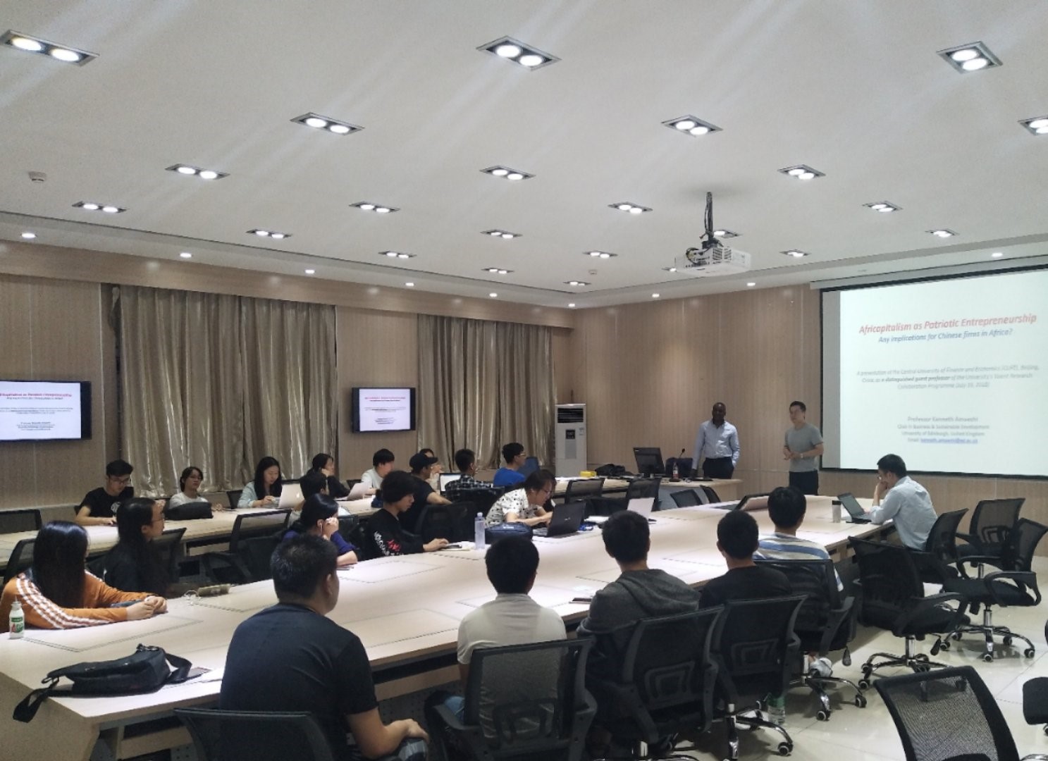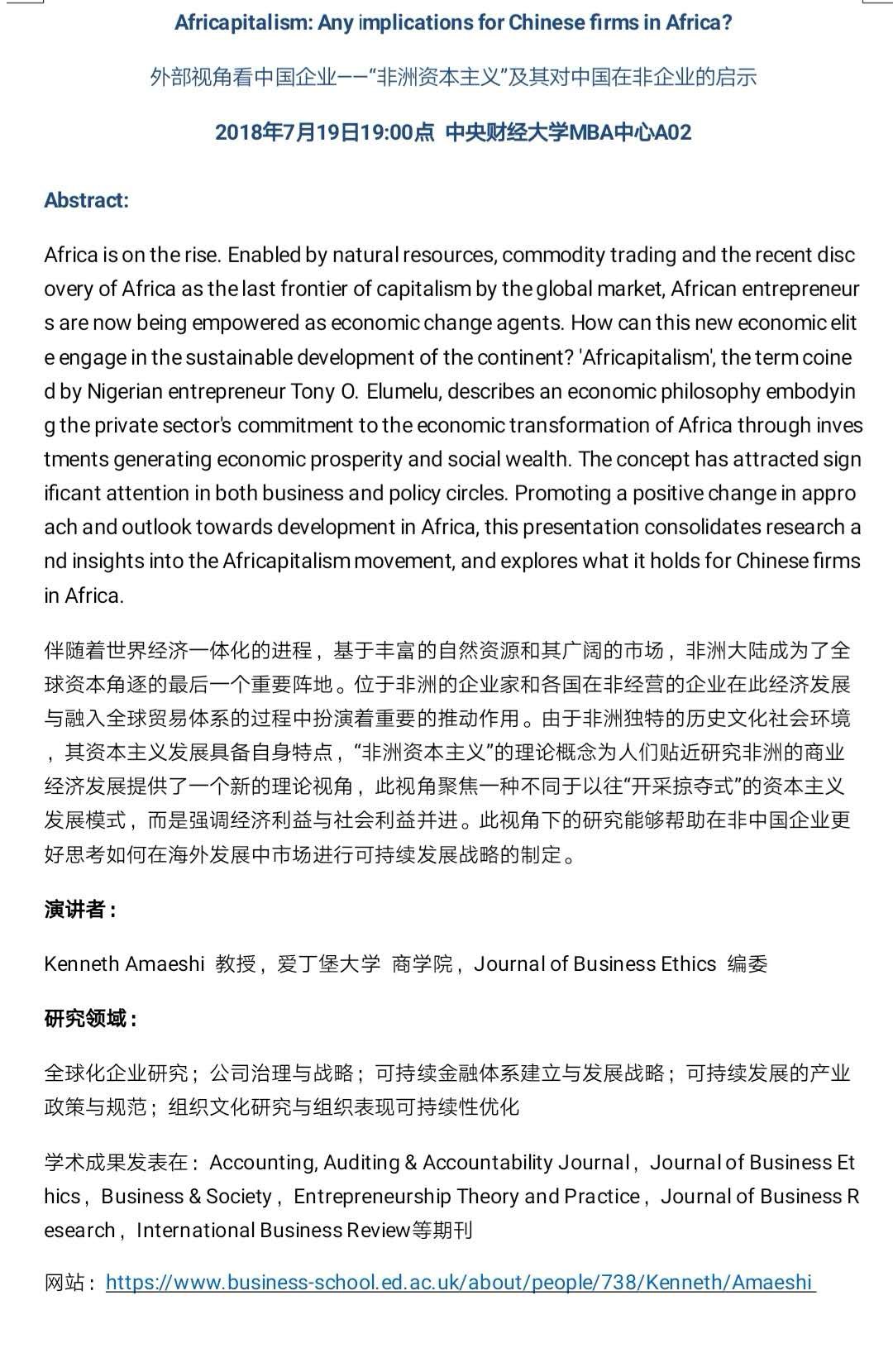 Kenneth Amaeshi教授在yl7703永利官网MBA中心进行了一场题为“Africapitalism as Patriotic ntrepreneurship: Any Implications for Chinese Firms in Africa”的学术演讲。演讲中Kenneth Amaeshi教授从政治经济学视角对非洲国家的市场经济和制度环境进行了剖析,并提出当地爱国主义企业家应该扮演的积极作用,最后,Amaeshi教授从非洲视角对在非的中国企业提出管理与发展建议。