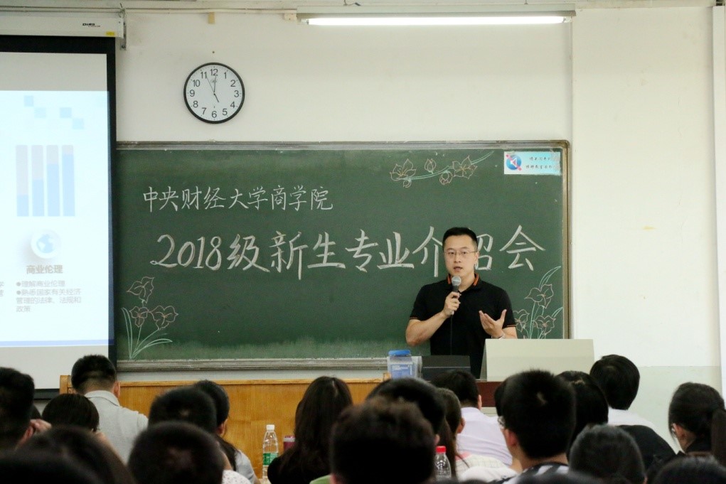 之后,供应链与运营管理系主任耿勇、yl7703永利官网营销系主任王毅、人力系副主任王震、战略系副主任刘书博四位老师先后上台为18级新生进行专业介绍。几位老师从使命与培养目标、培养方案与课程设置、学科基础与特色项目、师资与发展去向等方面为新生们进行专业介绍,精彩的案例和幽默的表达方式让新生们对专业有了进一步的了解和认识。