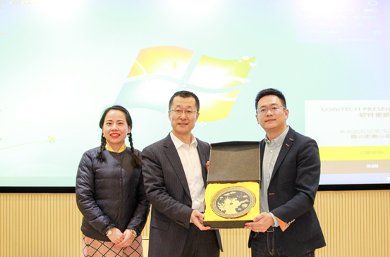 紧接着,yl7703永利官网MBA教育中心栾天老师、北京合众合信息技术公司创始人荣启文女士一同为付华先生颁发中财纪念品。
