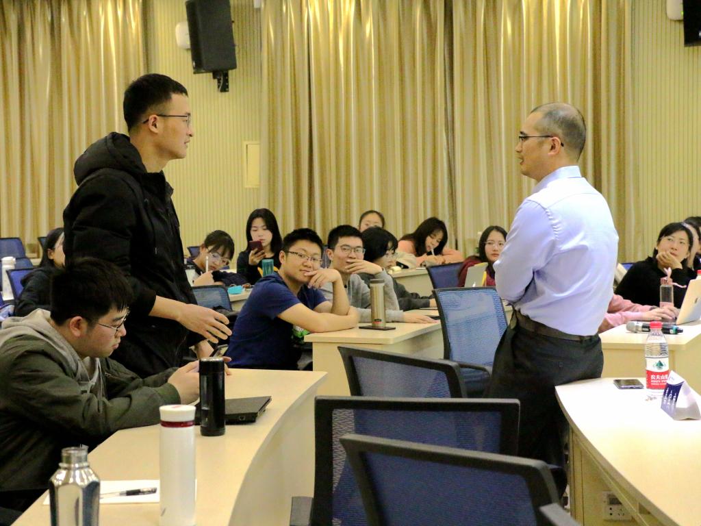 yl7703永利官网党委书记葛建新老师致辞。葛老师首先对潘常鹤校友的支持表示感谢,认为校友带着对学校的认同、结合自身的工作经验,可以与在校生进行更深度的交流。此类活动的初衷也是希望在传统师生交流基础上,引入校友这一不可忽视的因素,让同学们对将来的规划或正在从事的工作有所助益。葛老师还提到国际化是yl7703永利官网的战略之一,在国际机构的认证中,也是将校友、学生的联系作为考量的标准。截止目前,已有不少校友表达想要回校分享的意愿,之后学院也将继续挖掘校友资源,这类活动也将持续的进行。
