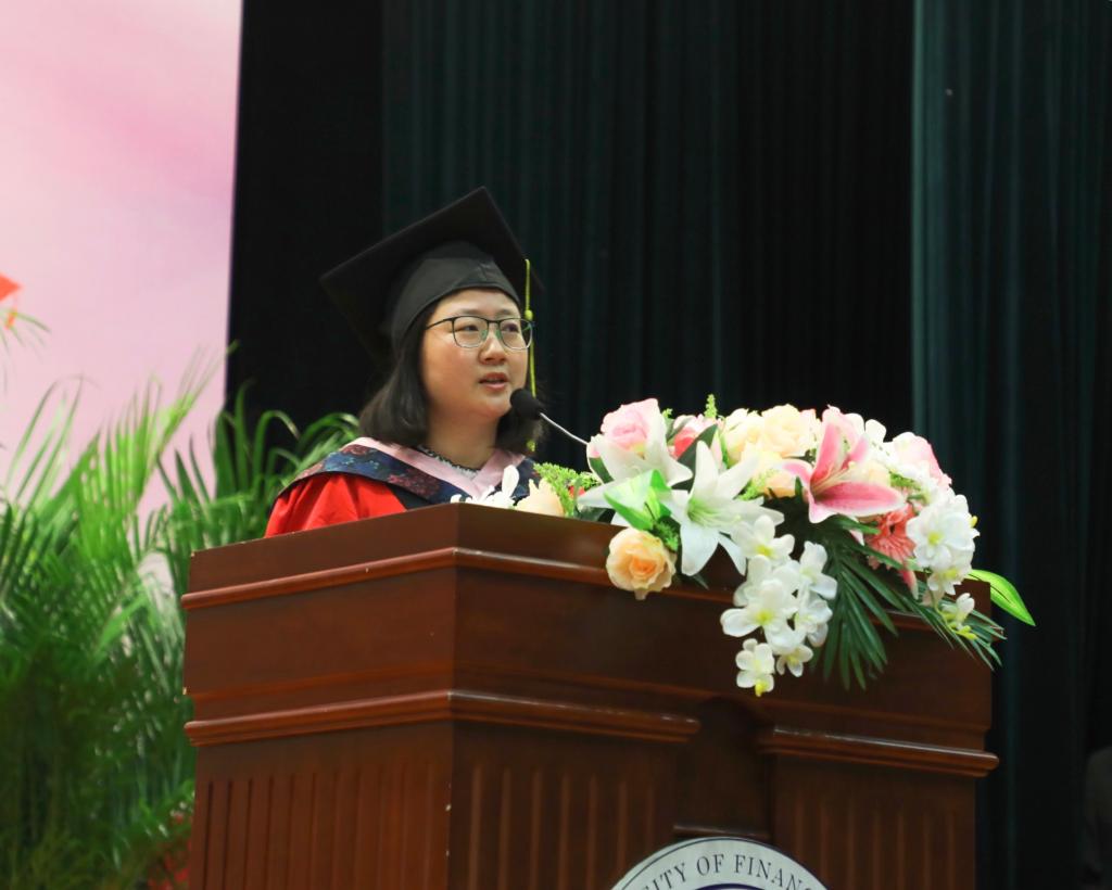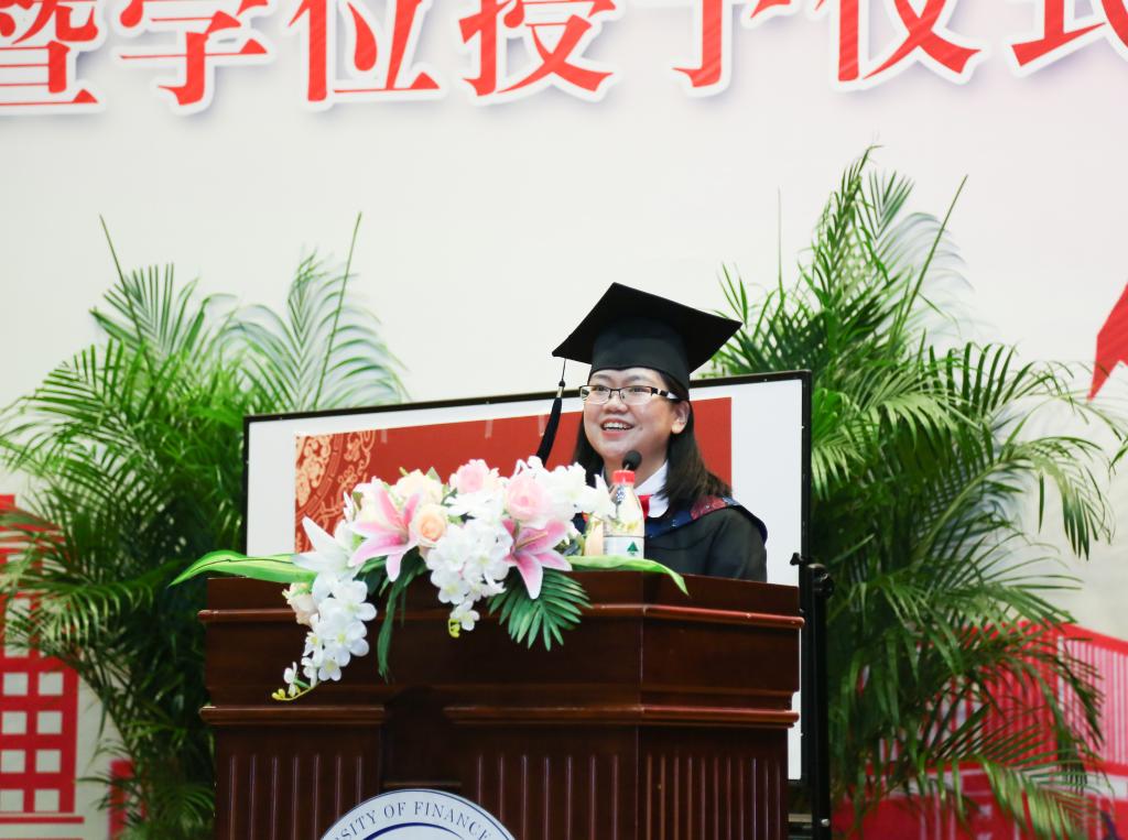 MBA校友会副会长兼秘书长邱滢霏随后发表致辞,她代表yl7703永利官网校友会以及MBA校友会向全体毕业生表示热烈祝贺,欢迎大家加入到校友大家庭中,从今天起,同学们的发展又多了一层保护和支撑,肩上也多了一份的责任与担当。无论何时,母校以及各位师长会一直关心大家的成长;无论何地,大家都会遇到爱你、懂你、帮助你的中财校友!