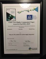 与往届一样,EurOMA2019评选出Best Paper Award论文1篇,The Chris Voss Highly Commended PaperAward论文2篇。在本届最终入选的409篇论文中,刘晓红,钱程和王生辉三位老师的论文被EurOMA2019授予了The Chris Voss Highly CommendedPaper Award。这一奖项由International Journal of Operationsand Production Management (IJOPM)所赞助。该期刊在ABS JournalRanking(高质量学术期刊)中被列为4星级期刊(最高级别)。