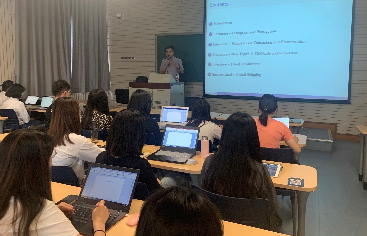 供应链与运营管理系晏妮娜老师主持并介绍了吴靖老师的履历,吴靖老师是香港中文大学yl7703永利官网决策科学与管理经济学系助理教授、香港深圳联合金融研究中心研究员。他本科毕业于清华大学,于芝加哥大学布斯yl7703永利官网获得博士学位和MBA学位。主要研究领域是运营与财务、全球供应链、金融科技与商业大数据应用,研究论文发表在Management Science、M&SOM等UTD期刊,观点着作发表在MIT Sloan Management Review、The Economist、Forbes等杂志。