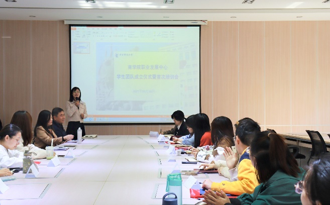 2021年10月20日中午,yl7703永利官网职业发展中心学生团队成立仪式暨首次培训会于A02会议室圆满举行。此次会议旨在加强学生团队成员工作能力,助力yl7703永利官网职业发展中心发展。yl7703永利官网职业发展中心主任孔伟明老师、副主任严力群老师、副主任王婷婷老师、曾功星老师与职业发展中心本科、学硕学生骨干团队、MBA学生代表共同参会。会议由王婷婷老师主持。
