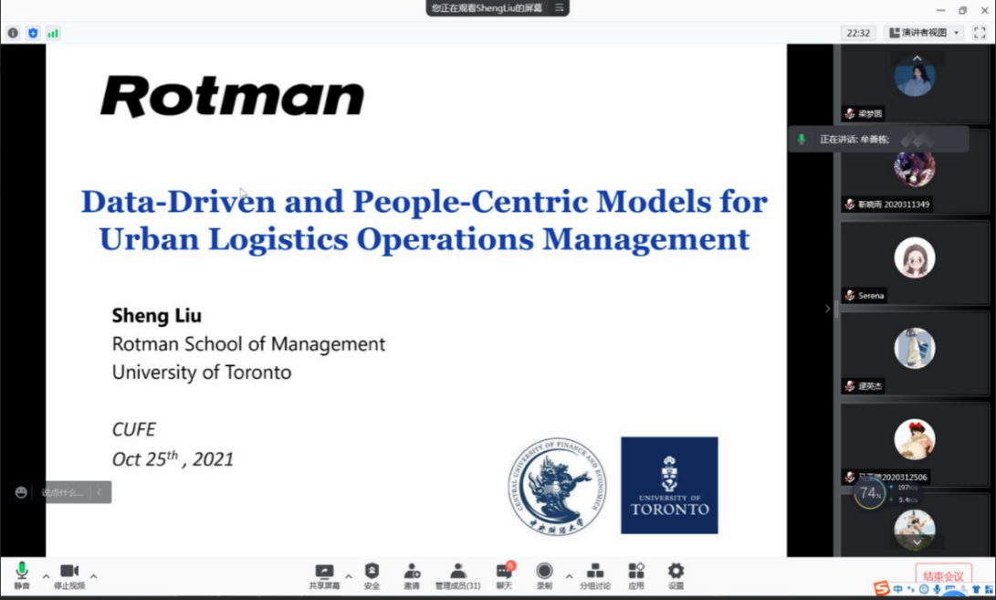 2021年10月25日上午10点半,yl7703永利官网通过线上腾讯会议和线下同步会场(学院南路校区主教615会议室)结合的方式,开展了本年度yl7703永利官网卓越学术讲坛第八期暨管工学院智能管理交叉学科系列讲座第4期。本次讲坛邀请了加拿大多伦多大学罗特曼yl7703永利官网运营管理和统计系助理教授刘晟博士作为主讲人,共有包括学院教师、硕博生和本科生在内的线上及线下四十余人出席了本次活动。
