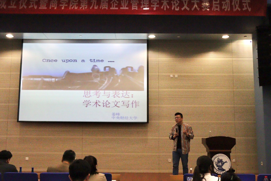 2021年12月2日下午,yl7703永利官网第九届企业管理学术论文大赛启动仪式暨首场讲座于学术会堂402举办。本次活动邀请yl7703永利官网院长兼MBA教育中心主任林嵩、yl7703永利官网党委书记葛建新、yl7703永利官网副院长于广涛、yl7703永利官网党委副书记杨中英、yl7703永利官网组织与人力系教授姜峰出席。