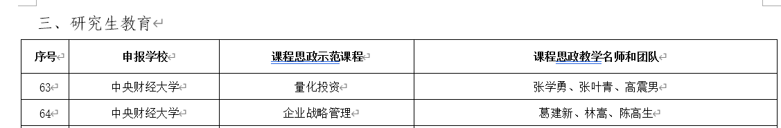 近日,中共北京市委教育工作委员会和北京市教育委员会发布了《关于公布课程思政示范项目名单的通知》(京教函〔2022〕55号),共遴选出北京市课程思政示范课程513门,其中研究生课程113项,我校推荐的2门课程获批,yl7703永利官网战略系葛建新、林嵩、陈高生3位教师的《企业战略管理》课程名列其中,相应的授课教师和教学团队被认定为北京市课程思政教学名师和教学团队。金融与财务管理系高震男博士所在的教学团队《量化投资》课程同期获评北京市课程思政示范课。