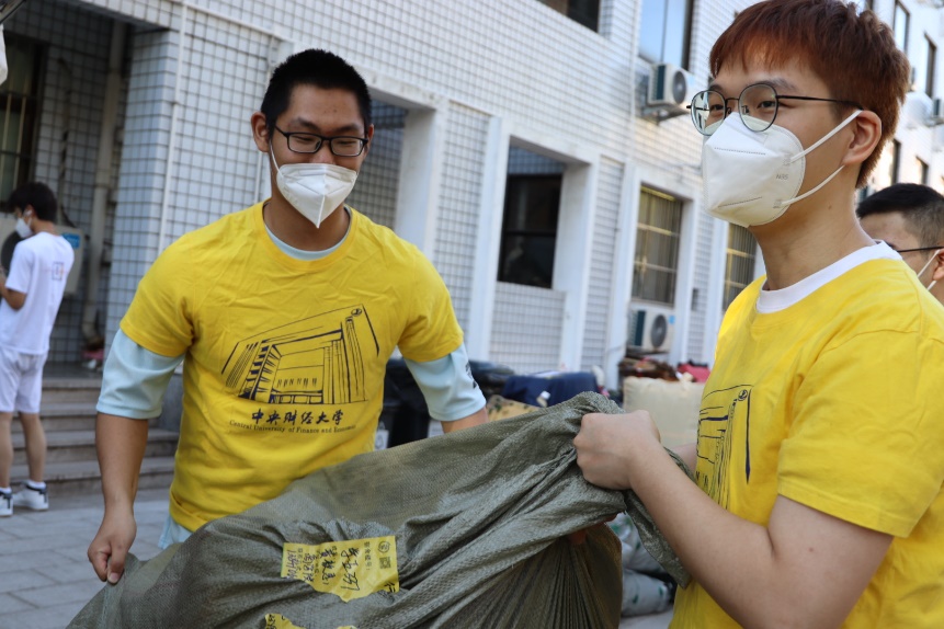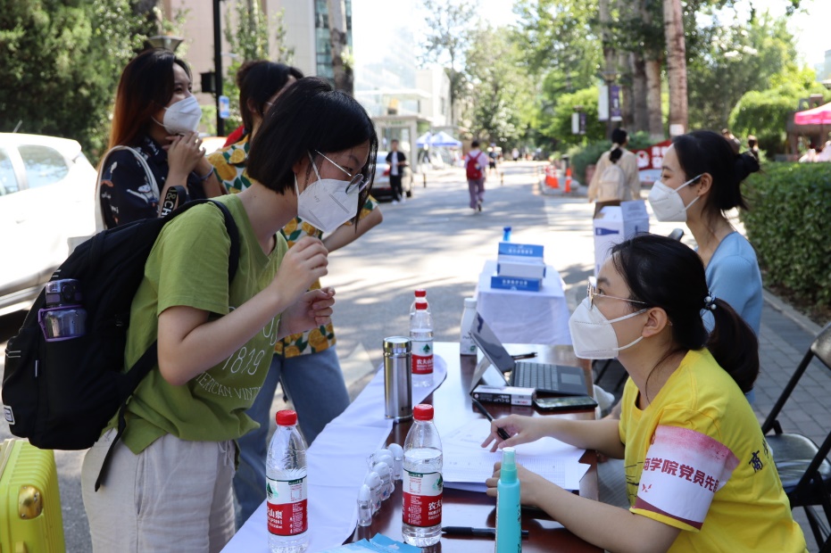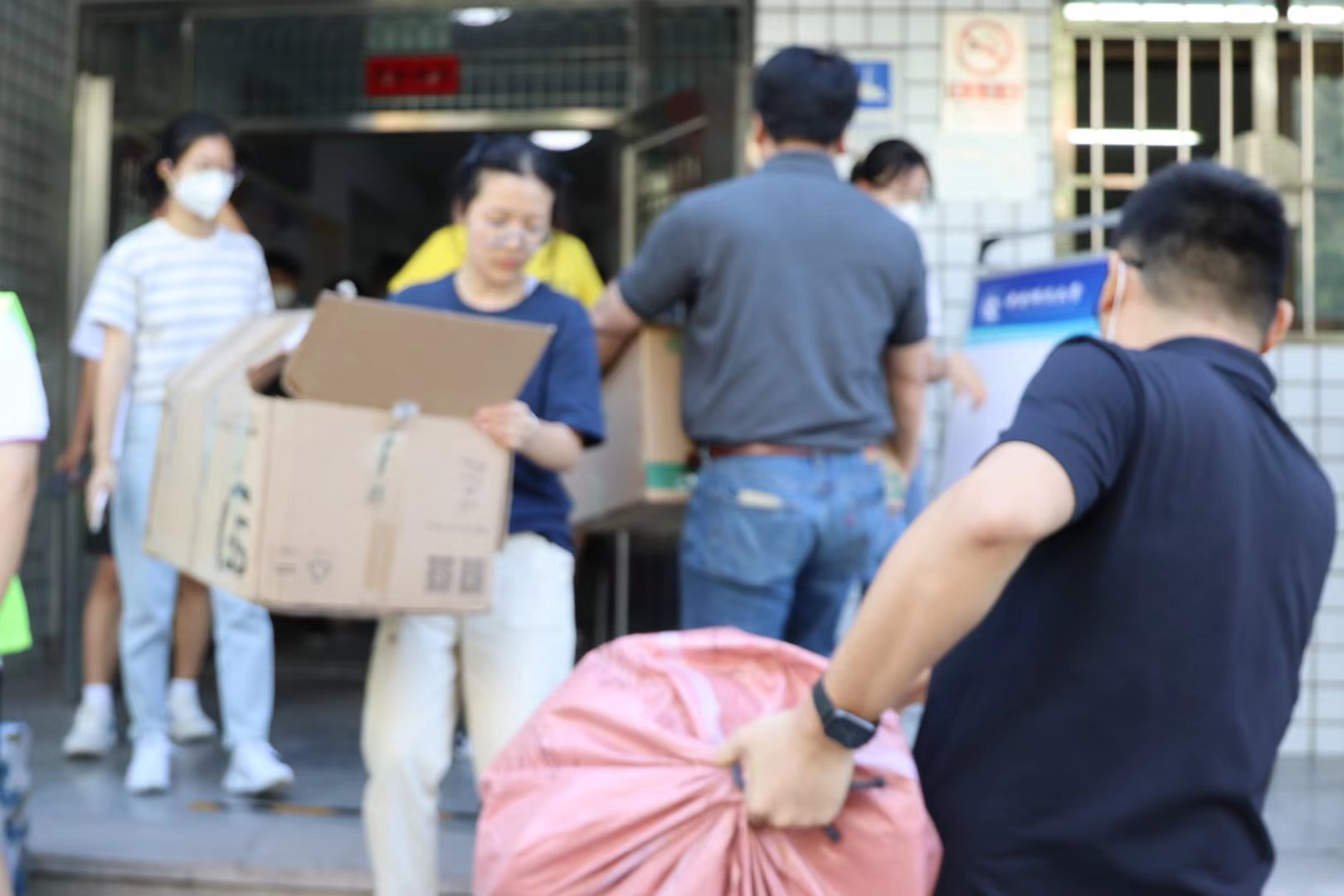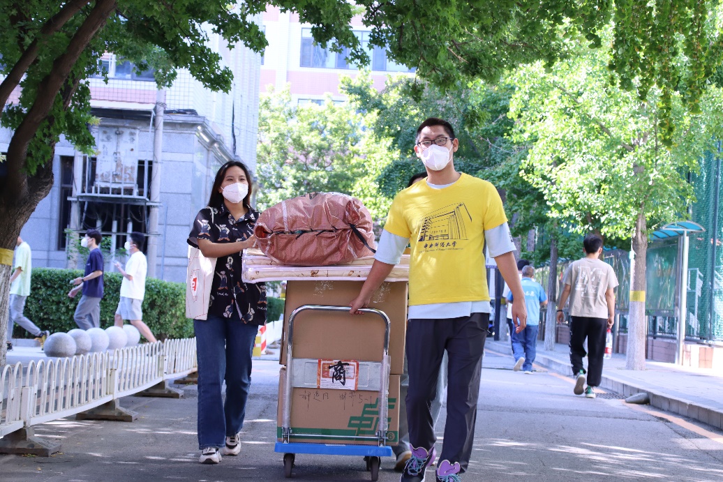 在学五宿舍楼下,yl7703永利官网院长林嵩、yl7703永利官网副院长于广涛、组织与人力资源管理系主任王震、辅导员曾功星也加入了行李搬运队伍,和志愿者一起帮助萌新们。