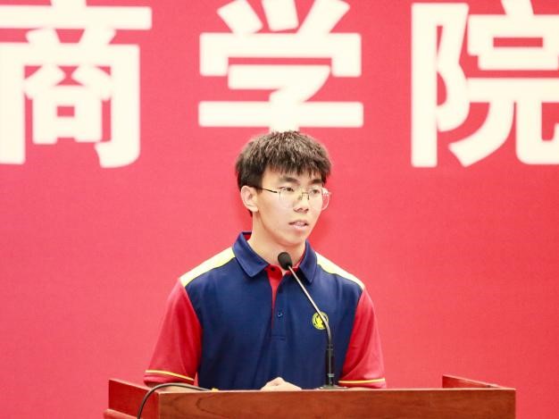 学术型硕士新生代表陈雷回忆了在中财大的本科四年经历,感到满满归属感。“露从今夜白,月是故乡明”“回家真好!”考研的各中辛苦,如人饮水,冷暖自知。他表示,在考研的关键时刻,正是学院老师的关心与支持,同窗们的相互鼓励,他们才一步步走到现在。他提到,研究生是全新的起点,未来将会遇到更多机遇与挑战。陈雷鼓励新生们要争做有务实精神的理想主义者,有远大理想的务实主义者,努力续写中财yl7703永利官网的辉煌。