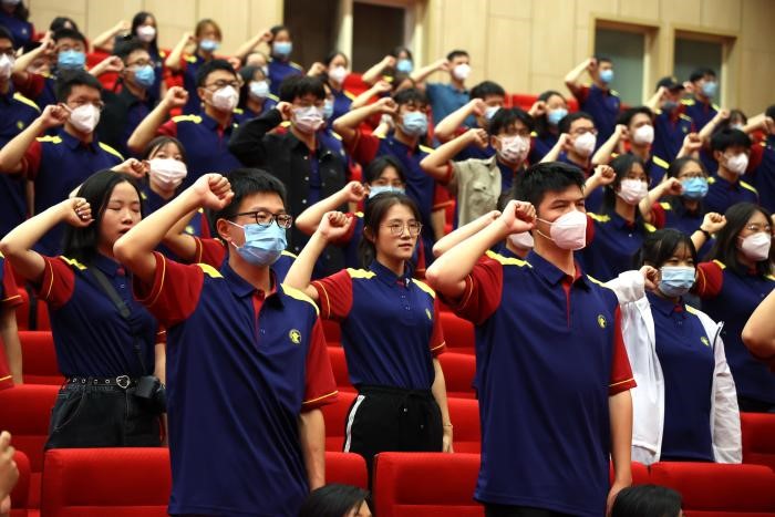 随着庄严的国歌奏响,新生开学典礼正式拉开帷幕。