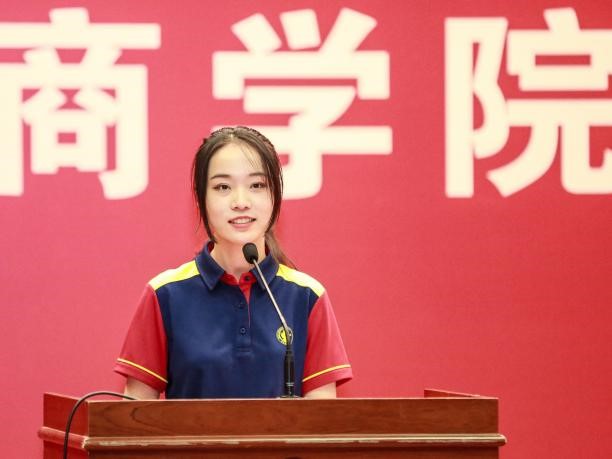 本科新生代表杨绿园描述了对大学生活的初印象和对中财大yl7703永利官网的情感。每每进入yl7703永利官网主楼时,映入眼帘的“贡献管理新知,培养具有全球视野,创新精神,社会责任意识的领导者”一行字给她留下了深刻印象。她希望所有同学都能在yl7703永利官网拓宽生命的厚度,延展灵魂的宽度,探索世界的维度。