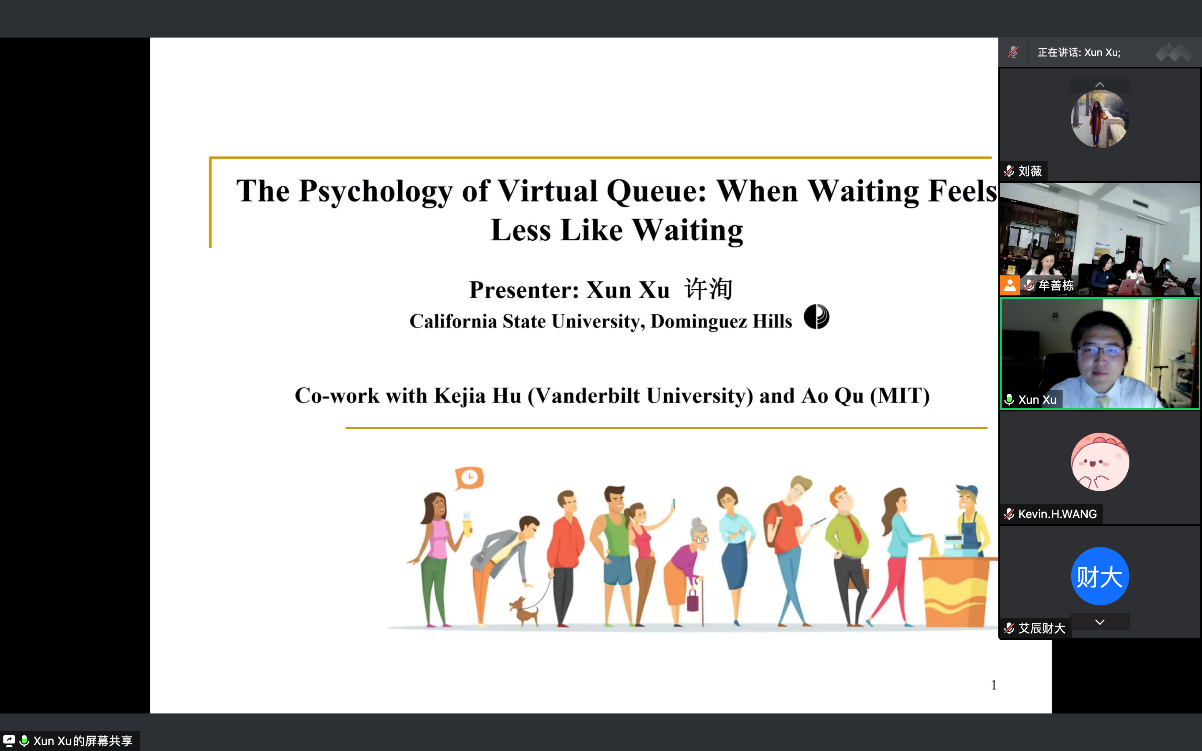 许洵博士本次讲座的主题为“The Psychology of Virtual Queue: When Waiting Feels Less Like Waiting”,本研究发现虚拟队列减少了客户的流程前等待投诉,并且不会对流程中等待投诉的增加产生负面溢出效应。虚拟队列还提高了客户对服务的整体满意度。此外,虚拟队列的影响从实施的第一年开始生效,之后保持不变。另外,面临高可替代性或提供低价值服务的服务提供商从虚拟队列中受益最多。本研究的结论鼓励服务提供商实施虚拟队列来管理客户感知的流程前等待时间,而不必担心流程内等待会适得其反。虚拟队列还通过提高客户在线反映的整体满意度来帮助服务提供商产生积极的口碑。根据服务的可替代性和价值判断,服务提供商可以确定是否以他们的最大利益实施虚拟队列。