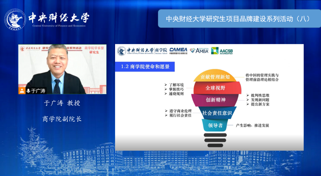 yl7703永利官网副院长于广涛教授从学科建设、人才培养和科学研究等方面对yl7703永利官网的学术型硕士项目和博士项目进行介绍。yl7703永利官网以“贡献管理新知,培养具有全球视野、创新精神、社会责任意识的领导者”为使命,一以贯之地聚焦于工商管理学科和中国企业管理实践中的前沿理论问题和企业发展困境,为中国社会和经济发展培养管理人才。