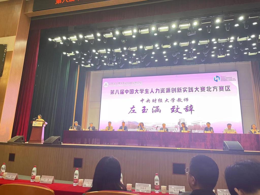 中国大学生人力资源创新实践大赛创办于2015年,已连续举办八届,并于2023年3月被纳入《2023全国普通高校大学生竞赛分析报告》观察目录,成为教育部学科竞赛上榜赛事。该赛事旨在向全国范围内的人力资源管理及相关专业的学生,提供一个具有广泛影响力的人力资源专项竞赛平台。其主要目标是推动高校人力资源管理专业和相关专业的学生关注人力资源实际操作技能,并引导学生从企业人力资源管理实践出发,提高他们的实际操作能力和解决实际管理问题的能力。本次北方区赛,由来自北京师范大学、北京理工大学等32所高校代表队、370余名本科生、研究生参加比赛。我院左玉涵老师作为参赛指导教师代表在开幕会上做了发言。