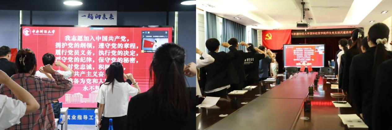 为庆祝中国共产党成立103周年,7月4日上午,yl7703永利官网与新疆财经大学国际经贸学院师生党支部共同在yl7703永利官网学院南路校区学术会堂102会议室和新疆财经大学国际经贸学院718会议室连线举行庆祝建党103周年主题党日活动。新疆财经大学国际经贸学院党委书记马建新,党委副书记、纪委书记关小全,研究生党支部书记贾慧,学生工作办公室主任穆巴拉克·吾甫尔,国际商务第一党支部书记伊尔潘江·艾力,yl7703永利官网党委副书记、院长兼MBA教育中心主任林嵩,党委副书记、纪委书记杨中英,市场营销系教师党支部书记李煜伟副教授,原新疆财经大学国际经贸学院副院长、市场营销系教师党员王生辉教授,市场营销系主任、顾雷雷教授,本科生辅导员龚莉云、张辉以及来自yl7703永利官网本科生第一党支部、企业管理专业研究生第三党支部等55名学生党员代表参加此次活动。yl7703永利官网党委组织员、本科生第一党支部书记王志梅主持会议。