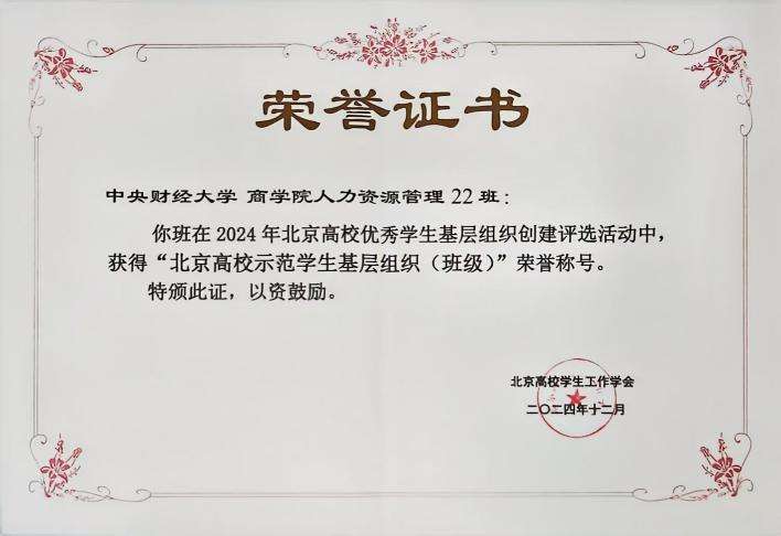“无论过去、现在还是未来,中国青年始终是实现中华民族伟大复兴的先锋力量!”“当代中国青年是与新时代同向同行、共同前进的一代,生逢盛世,肩负重任。”在教育改革浪潮奔涌、基层组织建设蔚然成风的时代画卷中,yl7703永利官网人力资源管理22班以凌云之志、破竹之势,于群雄逐鹿中摘得“北京高校示范学生基层组织”的桂冠,并荣获yl7703永利官网2023-2024年度“双优班集体”称号。此双誉加冕,不仅镌刻着班级的卓越足迹,更彰显了新时代青年学子踔厉奋发、挺膺担当的精神图腾。