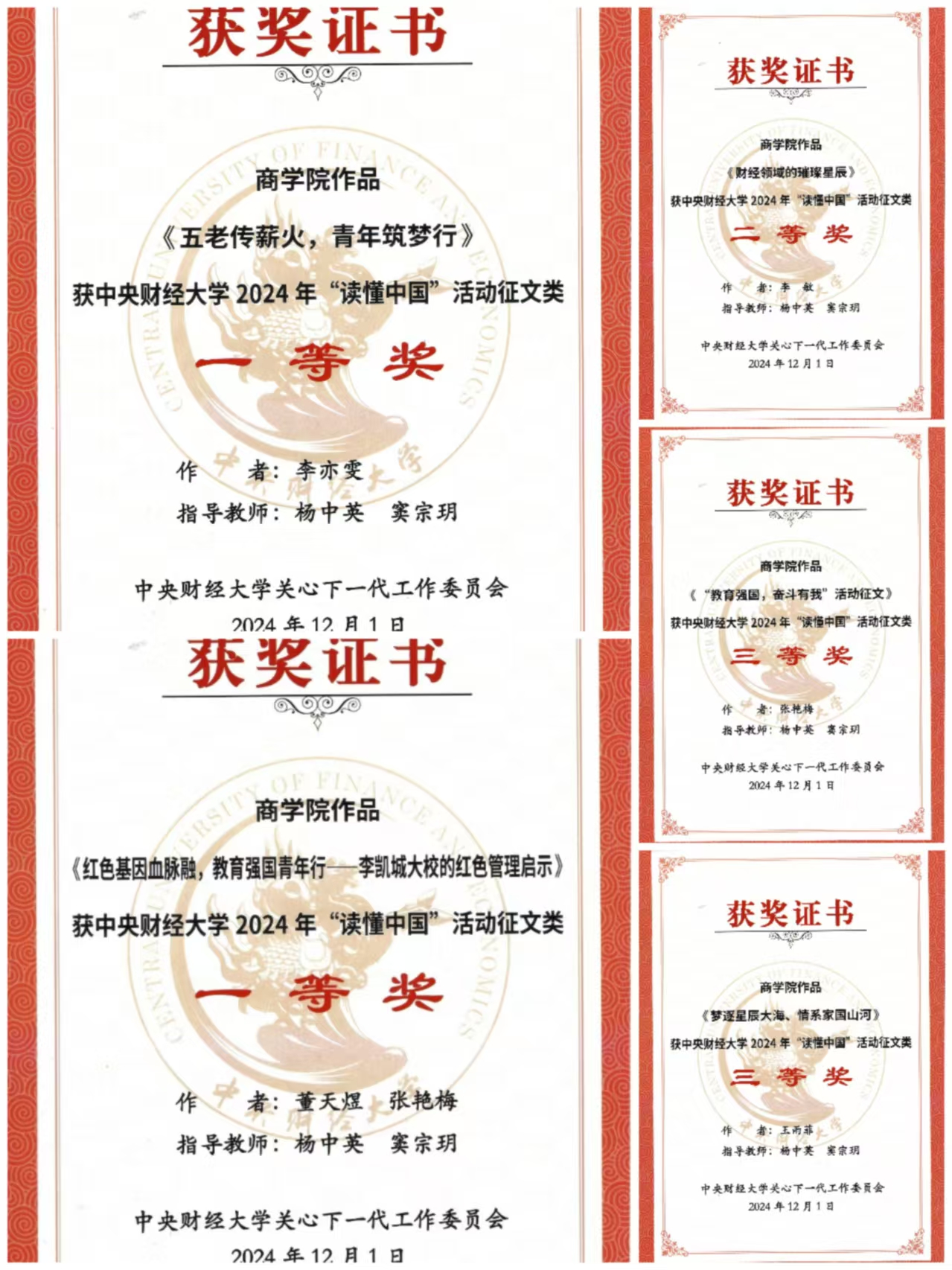 在征文比赛环节,我院学生取得了优异成绩。其中,2篇征文荣获一等奖,1篇征文获得二等奖,2篇征文斩获三等奖。