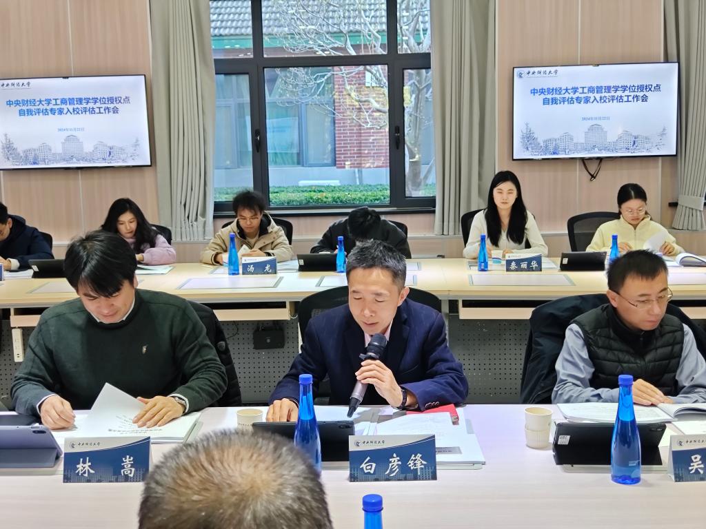 On the afternoon of 22 November 2024, the working meeting of the self-assessment of business administration degree authorisation points of Central University of Finance and Economics (CUFE) by experts entering the university was held in the MBA Education Centre. The evaluation expert group consists of Professor Qi Yudong, Dean of School of Economics and Business Administration of Beijing Normal University, Professor Chen Kaihua of School of Public Policy and Management of University of Chinese Academy of Sciences, Professor Liao Guanmin, Deputy Secretary of the Party Committee of School of Business of Renmin University of China, Professor Li Kai, Associate Dean of School of Business of Nankai University, and Professor Ma Zhiming, Head of the Accounting Department of Guanghua School of Management of Peking University. Dean of Graduate School Bai Yanfeng, Dean of Business School and Director of MBA Education Centre Lin Song, Dean of School of Accounting Wu Xi, as well as representatives of faculty and students of Business School and School of Accounting attended the meeting, which was presided over by Vice Dean of Business School Liu Xiaoyuan.