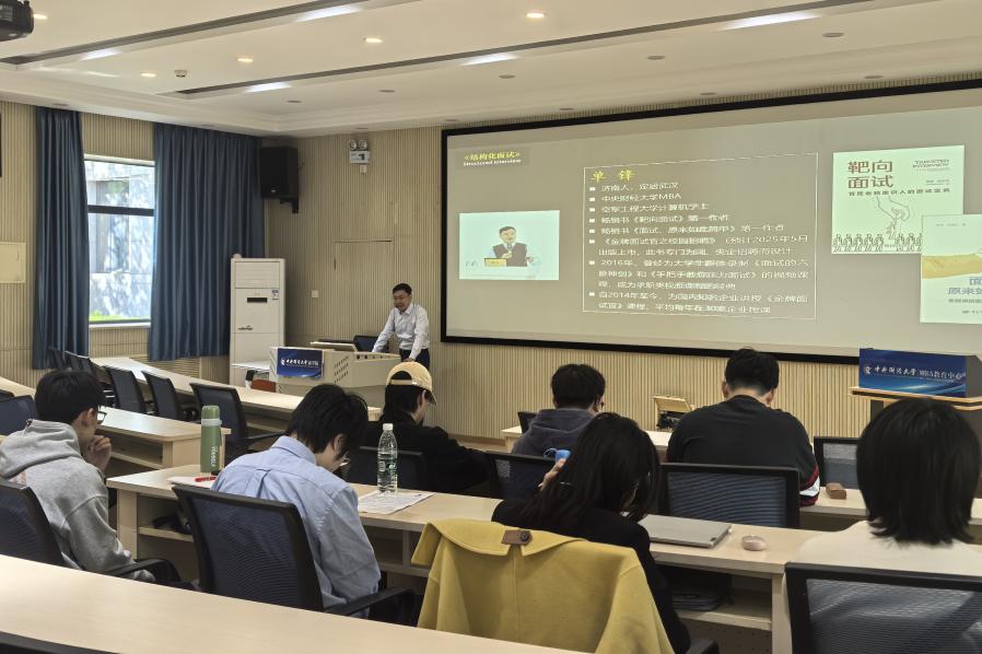 In order to further improve the job application skills and techniques of CUFE Business School students, the College held a series of coaching on April 10th in A28 of MBA Education Center - structured interview skills analysis, no-leadership group mock interviews and resume coaching. Counseling Professor Shan Feng was invited to give the lecture. Professor Shan Feng is a 2012 MBA alumnus of CUFE Business School. He is the author of the best-selling book "Targeted Interview", "Interviewing, It's So Simple", and the main speaker of the short video "Interviewing's Six-Pulse Divine Sword".