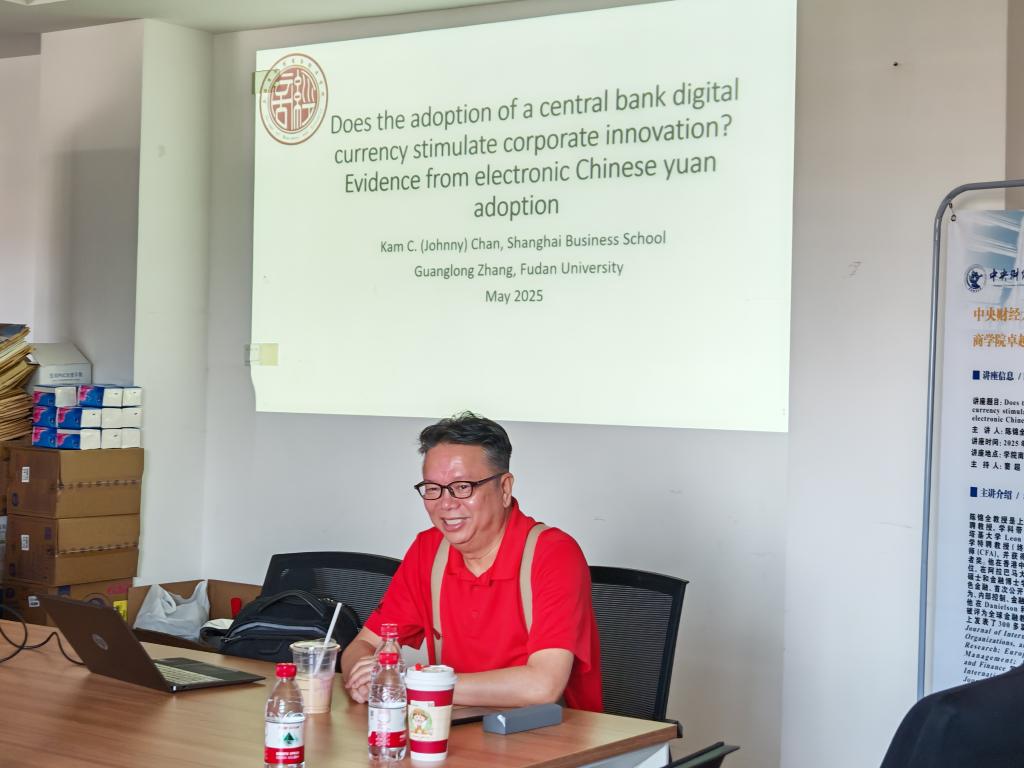 Prof. Chen Jin delivered a lecture titled "Does the Adoption of a Central Bank Digital Currency Stimulate Corporate Innovation? Evidence from Electronic Chinese Yuan Adoption". Based on data from the phased pilot of the digital Chinese yuan (e-CNY) in China, he explored the incentive effect of central bank digital currencies (CBDCs) on corporate innovation. The lecture analyzed how the digital yuan promotes the quantity, quality, and efficiency of corporate innovation by enhancing the transparency and traceability of government subsidies, alleviating corporate agency problems, and reducing financial constraints. A difference-in-differences research design showed that compared with the control group, R&D expenditures of pilot enterprises increased significantly, and innovation activities further boosted productivity, product differentiation, growth capacity, and profitability, enhancing corporate market competitiveness. Prof. Chen Jin's research revealed the positive contribution of CBDCs as financial technology innovations to the development of the real economy, providing profound academic inspiration to the audience.