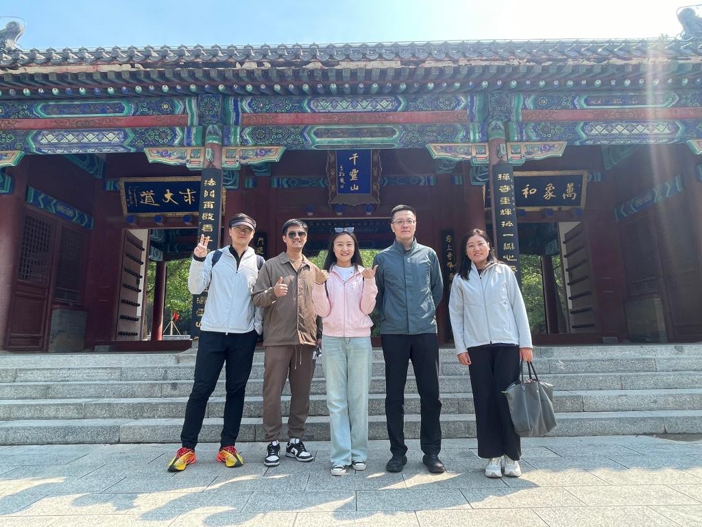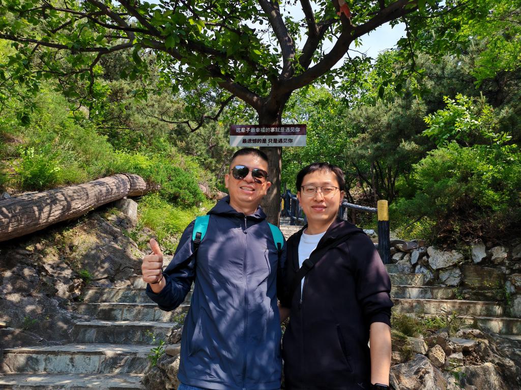 On the day of the activity, Beijing had a clear and sunny sky. In the morning, alumni gathered at the subway station exit, eager to explore nature and communicate with each other, and assembled on time. The hiking team officially set off at 9:00 AM, starting to climb along the winding mountain path. Along the way, everyone laughed and chatted, exchanging ideas and encouraging each other in a warm and harmonious atmosphere. During the ascent, the team passed through many historical sites of Qianling Mountain, such as Guanyin Cave, Wenshu An (Monastery), and Jile Cave (Bliss Cave), which carry the mountain's history. After more than two hours of climbing, the team successfully reached the summit. Standing on the top, the vast view opened up, with the distant cityscape stretching as far as the eye could see, bringing a sense of refreshment and joy.